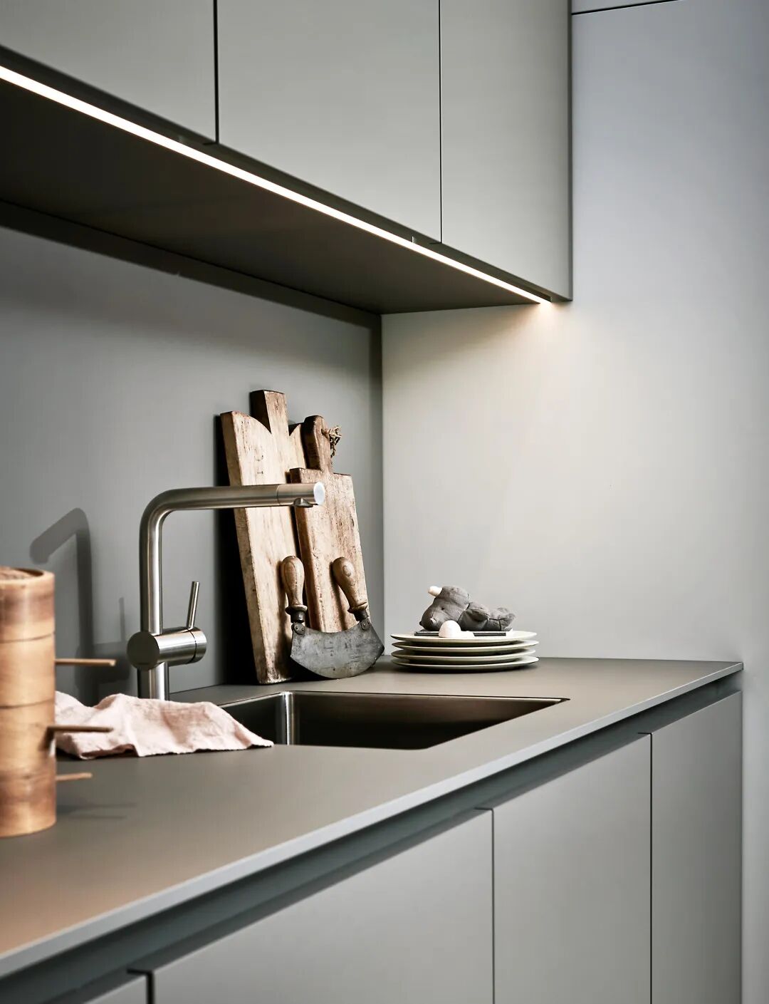 厨房也最好也增加辅助照明,可以在吊柜下方安装感应灯或灯带,使用时轻轻一扫就能打开,避免背光切菜时有切到手的风险,让父母使用更加方便。