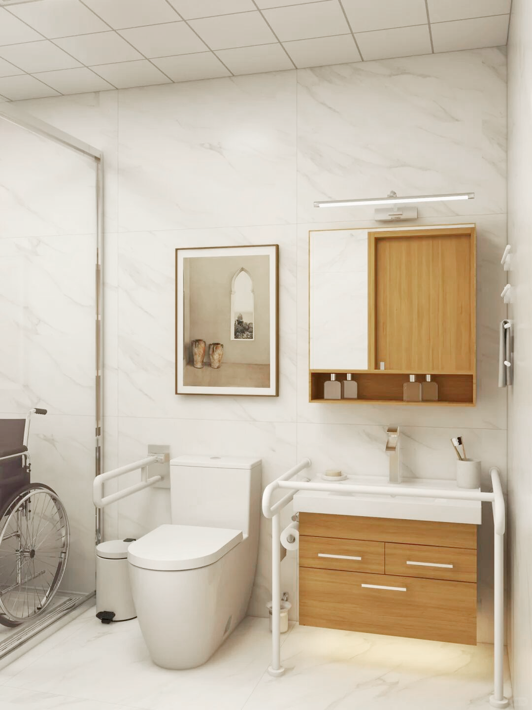 走廊换鞋处、马桶旁、淋浴房的墙上、浴缸旁、沙发两侧,这几个位置是老人经常要起身行走的地方,安装扶手可以在老人起身时提供强有力的支撑,降低潜在风险。