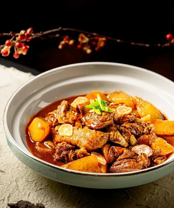 涌泉桔干红烧羊肉配幸福米饭