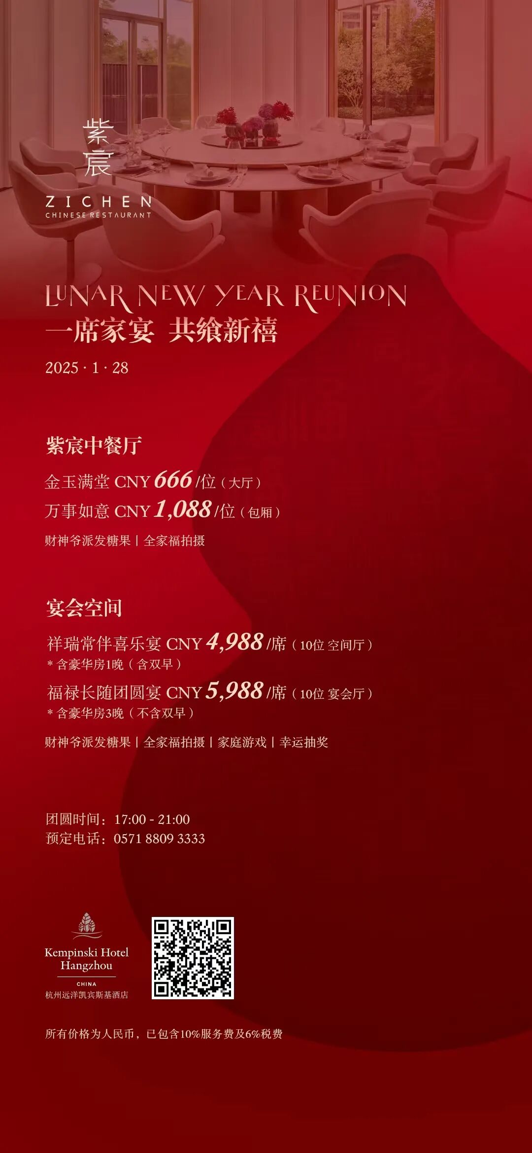 垂询及预订,敬请致电+86571 8972 9700