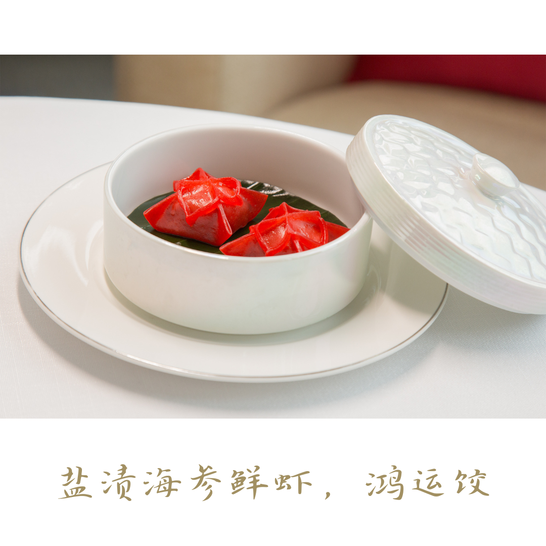 选用每日新鲜捕捞的龙虾,搭配醇厚绵密的进口牛油果,轻微调味后包裹于香软卷皮中,并以珍稀鱼子酱点缀,增添海洋的鲜咸风味,象征新年蒸蒸日上、好运连连。