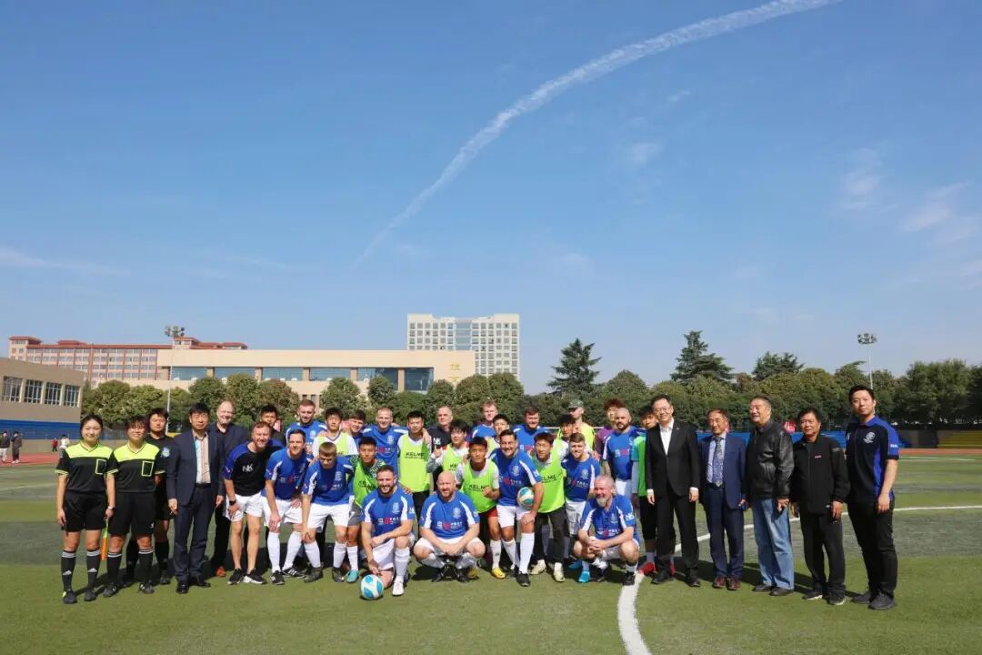 欢迎仪式后,英国英中足球论坛代表与学校男子足球队在体育场举行了一场别开生面的足球友谊赛。此次足球友谊赛不仅展示了双方球员的足球技艺和体育精神,更为中英两国的足球文化交流和教育合作搭建了一座桥梁。相信在未来的日子里,这种友谊将继续延续,共架中英教育、科技、创新合作的桥梁。