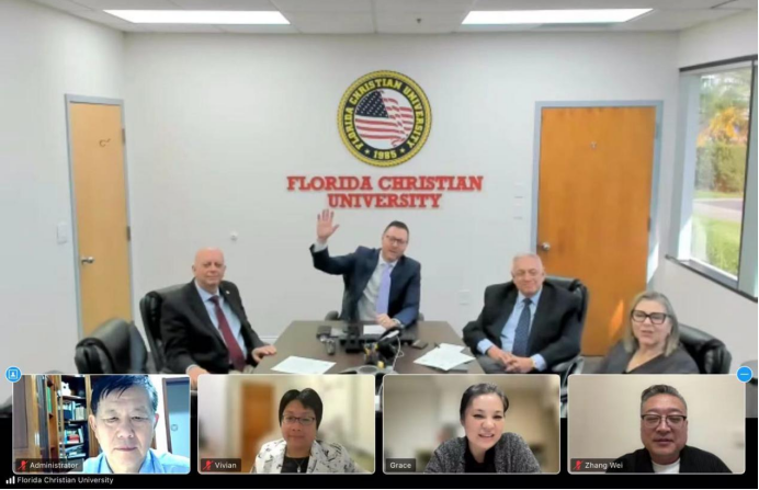 10月17日,西安培华学院与佛罗里达克里斯汀大学举行线上签约仪式。佛罗里达克里斯汀大学安东尼理事长、布鲁诺校长、赛季奥副校长、学校顾问委员会成员韩宗海教授出席了签字仪式。西安培华学院国际校长李华教授、校长助理张运良教授、教师发展中心主任张伟教授、国际交流中心主任王鹏、李华教授助理维维安博士、国际交流中心外事助理张菁出席仪式,国际交流中心王鹏主持。佛罗里达克里斯汀大学校长布鲁诺教授和西安培华学院国际校长正式签署合作协议。