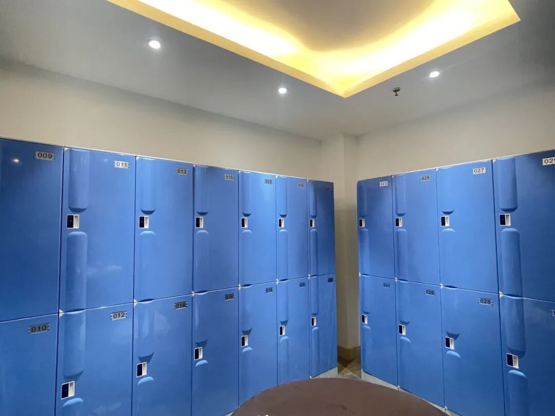 全面升级密码锁,更安全更私密,配备足够大的储物柜,更衣环境更加宽敞明亮,给您一种舒适整洁的感觉。