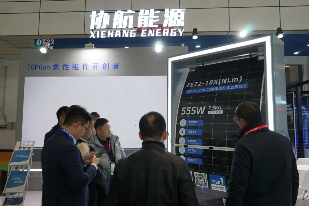 展会首日,协航能源在现场签署百兆瓦级柔性光伏组件供应协议,成为全场焦点!该订单不仅是协航柔性技术市场化的重要里程碑,更标志着柔性组件在大型项目中的应用获得行业认可。签约仪式上,协航代表表示:“柔性光伏将打破场景边界,推动分布式能源进入‘无界时代’!”