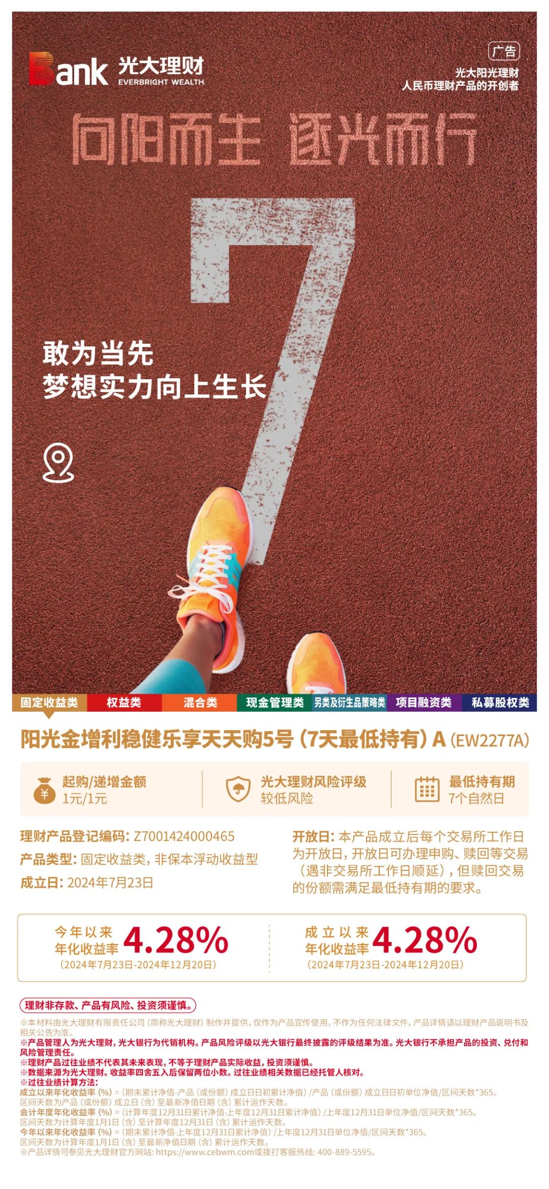 ※产品管理人为光大理财,光大银行为代销机构。产品风险评级以光大银行最终披露的评级结果为准。光大银行不承担产品的投资、兑付和风险管理责任。