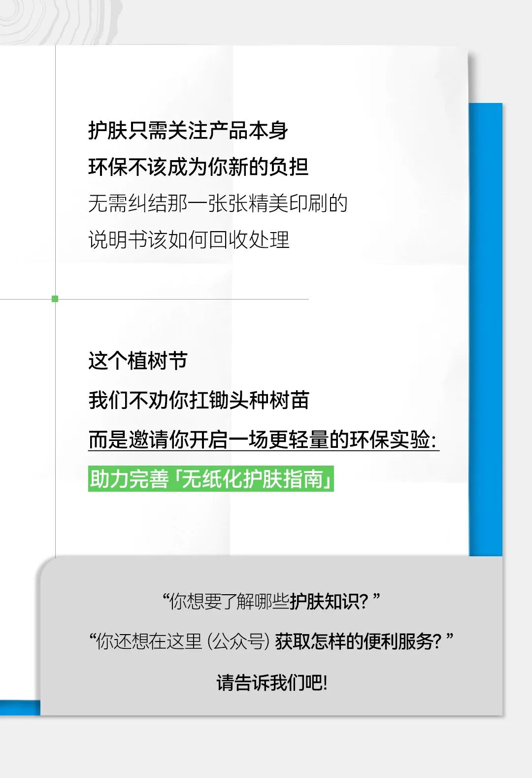 摘要:这个植树节,我们不做“纸”上谈兵!抛弃冗余说明书,解锁线上护肤指南+新品档案,用绿色选择守护森林。