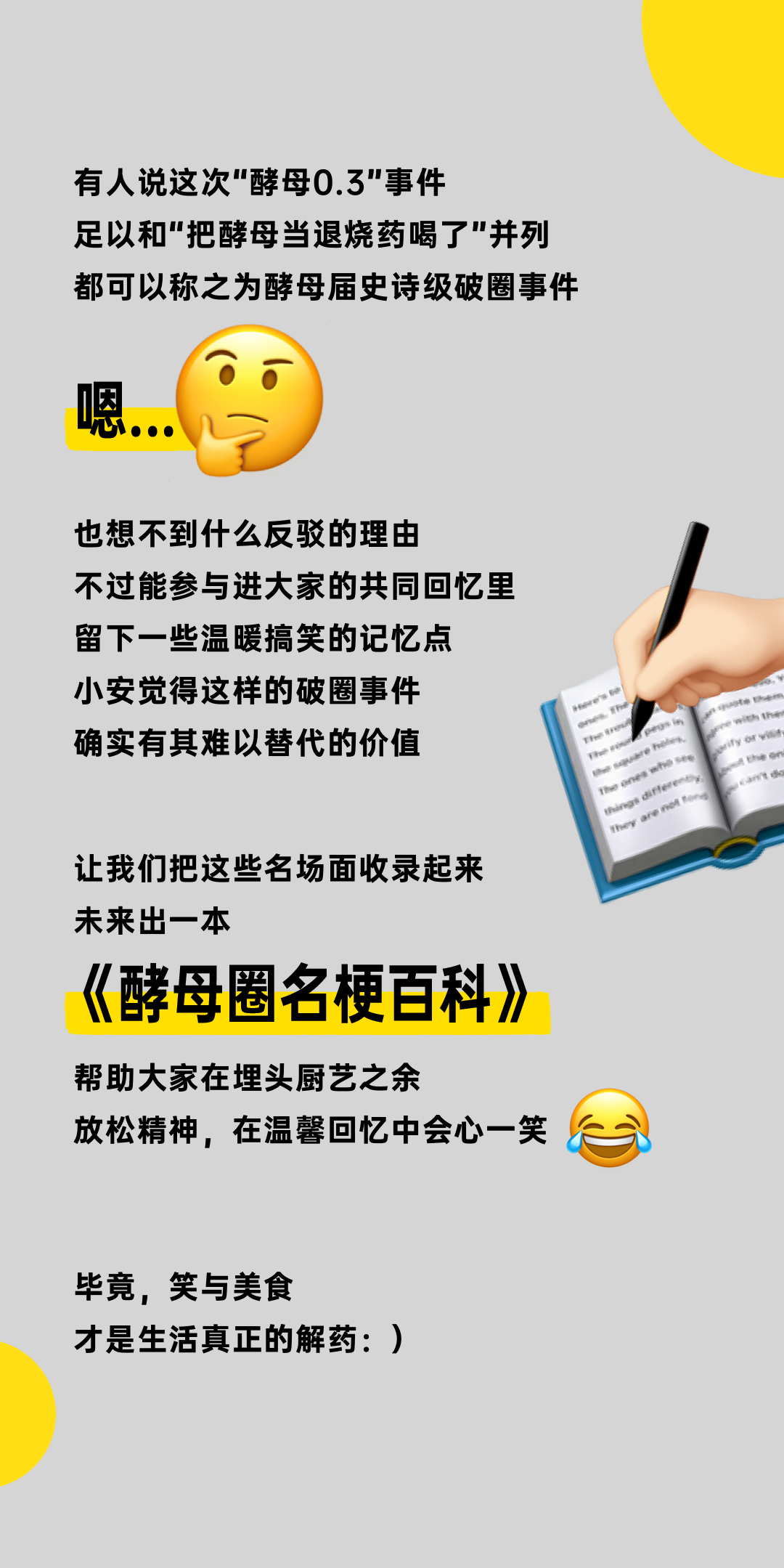 我们所有抽奖都设置在后台,大家可在后台发送暗号,本篇暗号为:【酵母0.3】即可点击进去参与抽奖!注意是后台(不是评论区),回复【酵母0.3】,点击🔗即可参与抽奖!