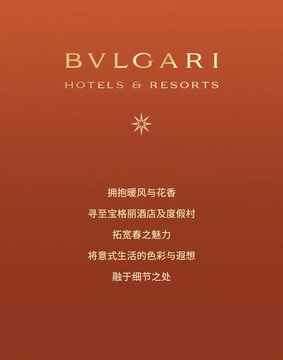 文章内容来源于公众号:BVLGARI宝格丽酒店及度假村,点此可查看原文,内容版权归相关企业所有,本网站仅供交流学习。若涉及版权问题或存在侵权情况,请及时与我们联系,我们将第一时间进行删除处理。