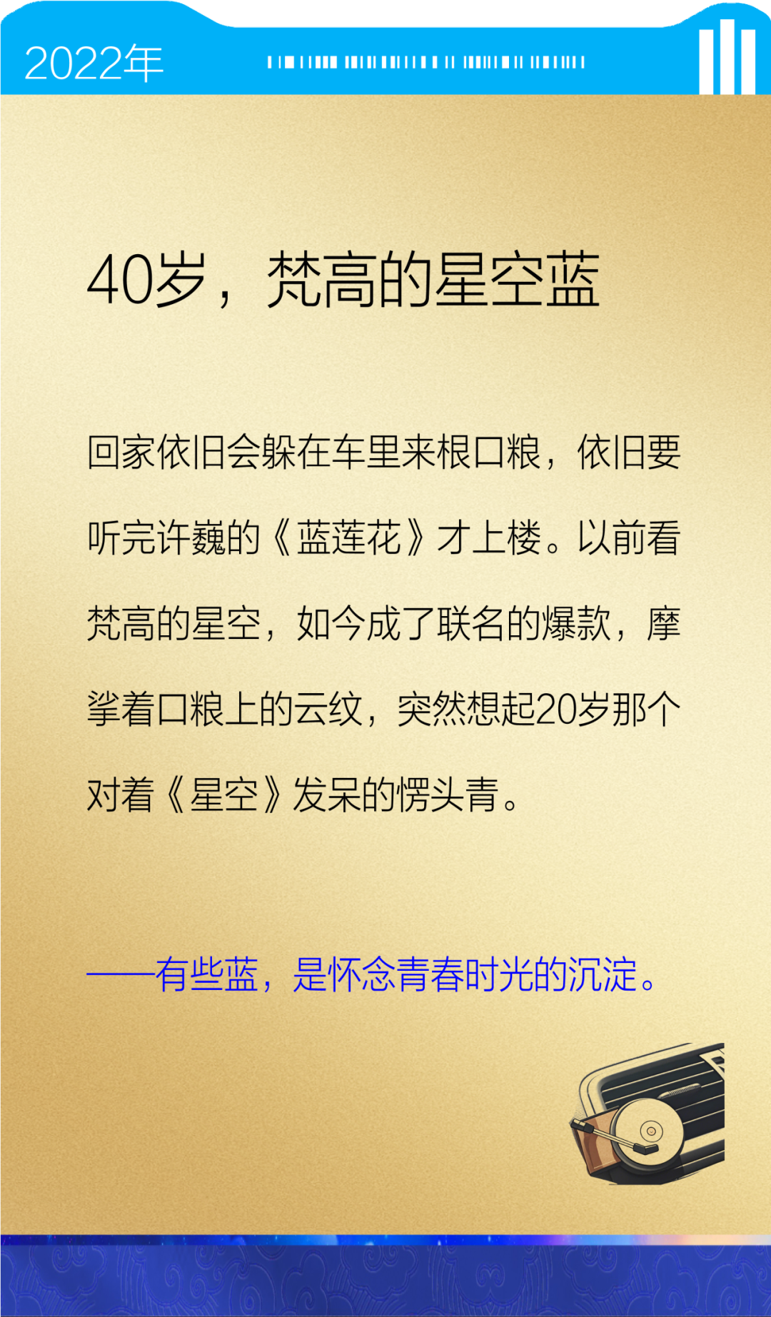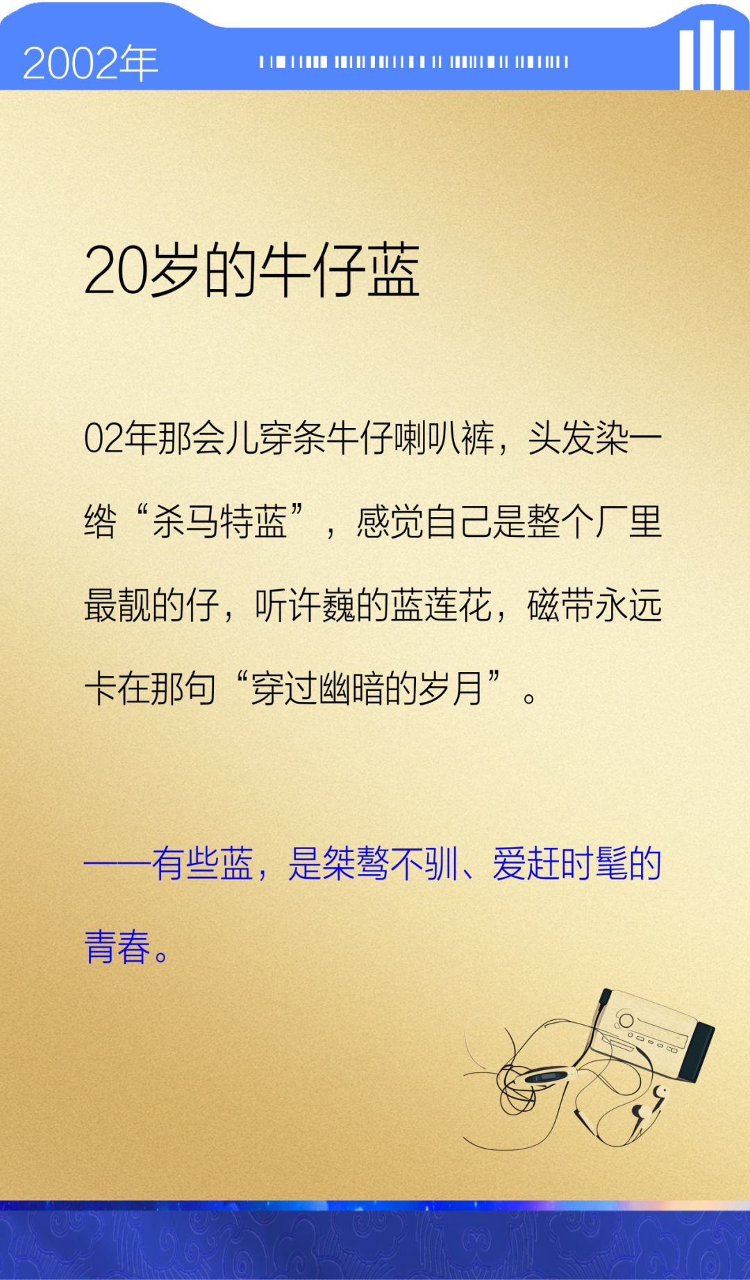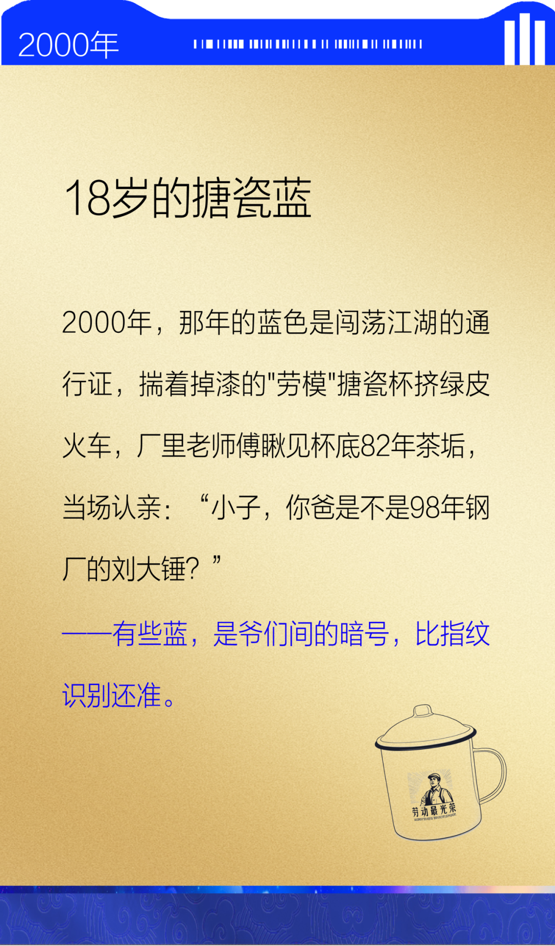 记忆里的蓝,是第一身工服的骄傲,是第一台电脑的蓝光,也是看《蓝色生死恋》流的眼泪,是更多专属你的情怀和故事,那就把你的蓝色记忆拍下来、写下来分享给我们吧。