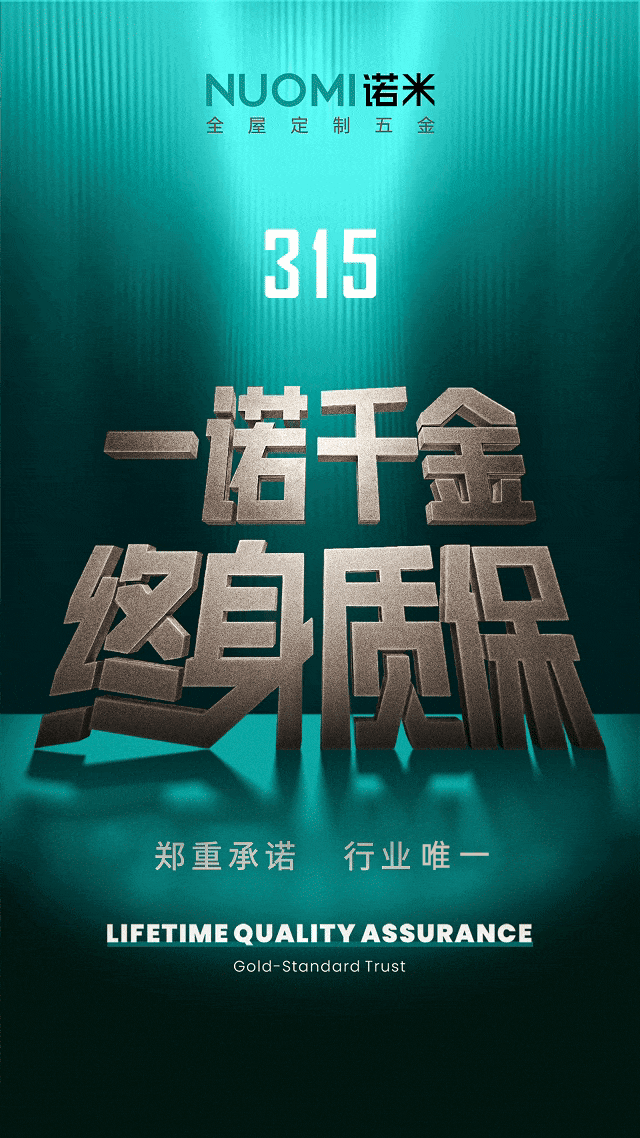 全屋定制五金品牌诺米家居于3·15国际消费者权益日宣布,面向全国用户推出“一诺千金,终身质保”服务。