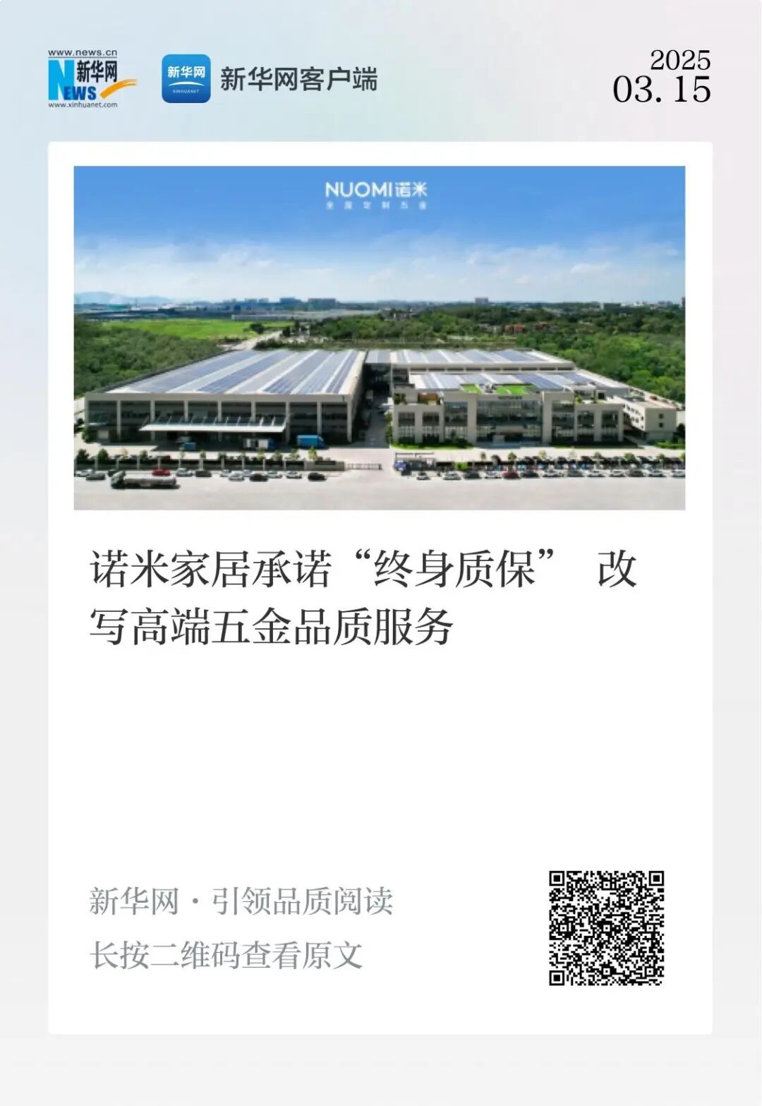 为了强化“终身质保”的承诺,诺米将与新华网文旅共创平台发起的“好物甄选”品牌活动,携手共赴品质之约。