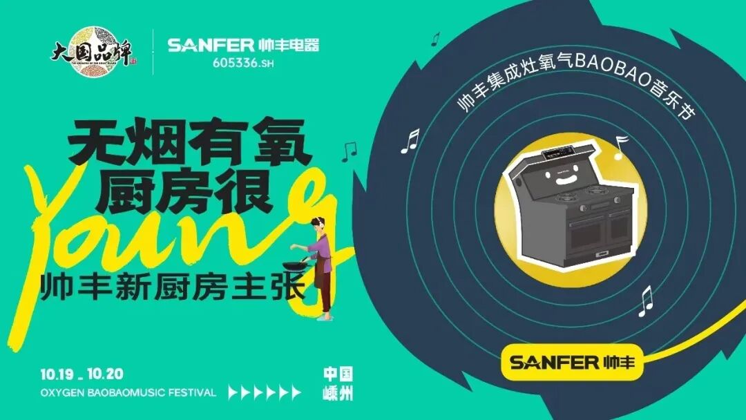 今年恰逢帅丰电器26周年庆,帅丰再次牵手氧气,以“无烟有氧,厨房很Young”为主题,为广大乐迷朋友们带来音乐盛宴,同时也为年轻人带来了帅丰新厨房主张。要风味,不要油烟异味——健康的厨房生活;要对味,不要千篇一味——高效的厨房生活;要趣味,不要枯燥乏味——轻松的厨房生活;要品味,不要平庸无味——开放式的厨房生活。音乐为生活加氧,打破人与人之间的边界,在音乐节现场听在一起,玩在一起,快乐在一起;帅丰集成灶,吸净厨房油烟,就像为厨房注入源源不断的“氧气”,打破厨房与客厅的边界,从背对背到面对面,健康快乐下厨;用音乐燃动生活的热情,用帅丰集成灶唤醒厨房的清新。10月19日至20日,帅丰集成灶将在嵊州氧气baobao音乐节现场给乐迷朋友们带来众多惊喜和福利,欢迎现场打卡帅丰潮流馆!![]()