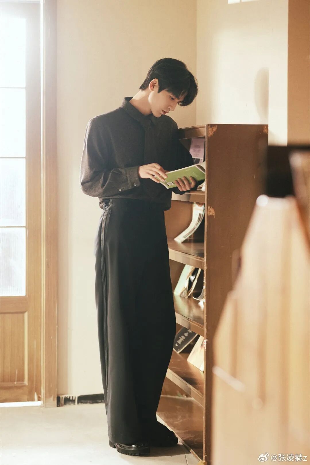张凌赫身材高挑,用廓形衬衫和高腰西裤呈现出本就出众的比例。日常照片里,他用毛呢短款外套与平整衬衫搭出温润的优雅感,少了Boxyfit一如既往的冷淡,多了他自己的韵味。
