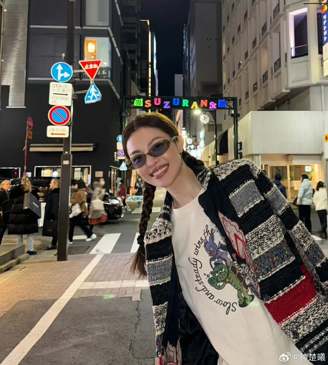 钟楚曦也会选择一些吸睛的纹路搭好Boxyfit,运用大幅印花和宽面积的横向线条,强化出立体造型,突出中性风格。