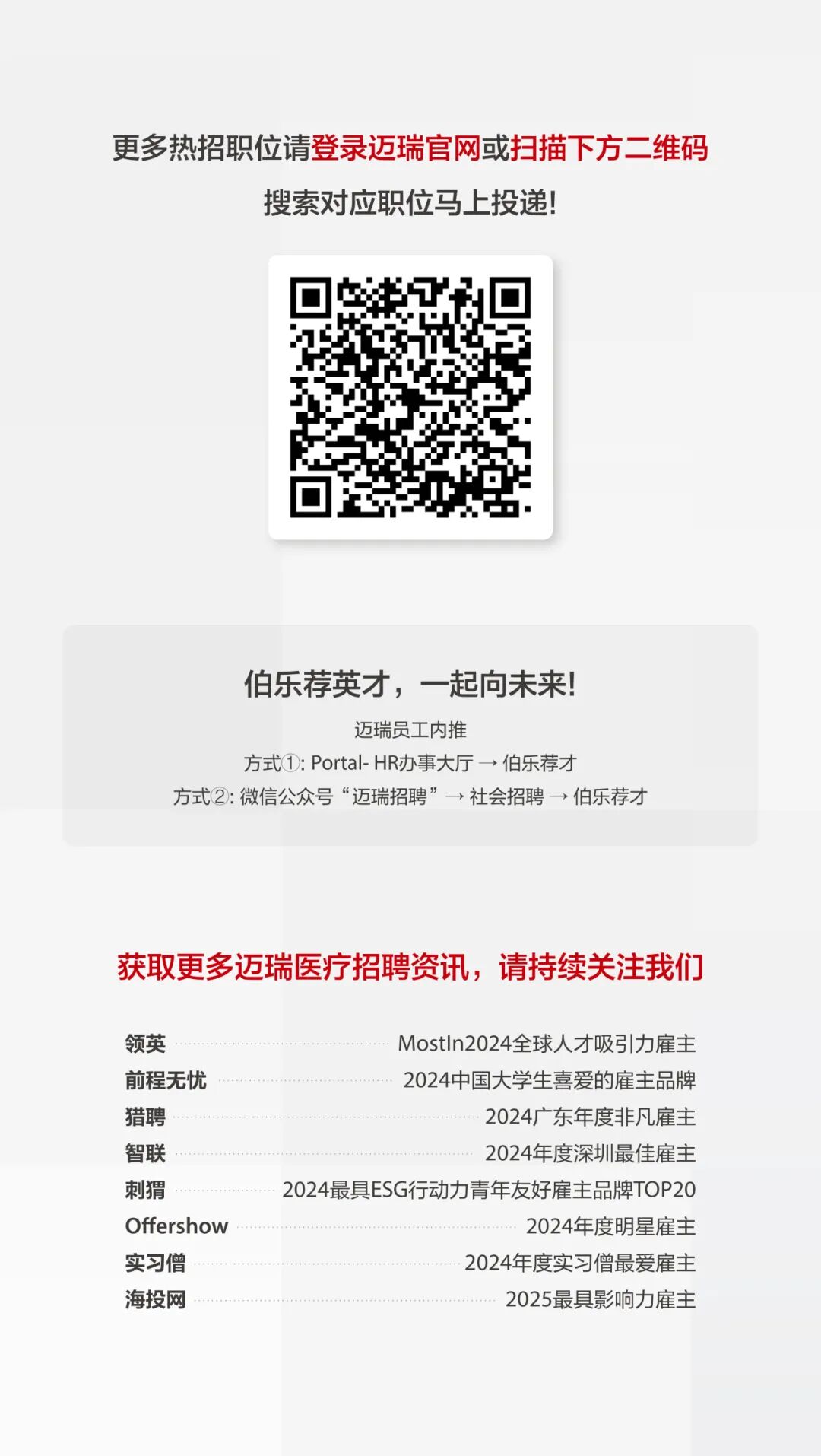文章内容来源于公众号:迈瑞招聘,点此可查看原文,内容版权归相关企业所有,本网站仅供交流学习。若涉及版权问题或存在侵权情况,请及时与我们联系,我们将第一时间进行删除处理。