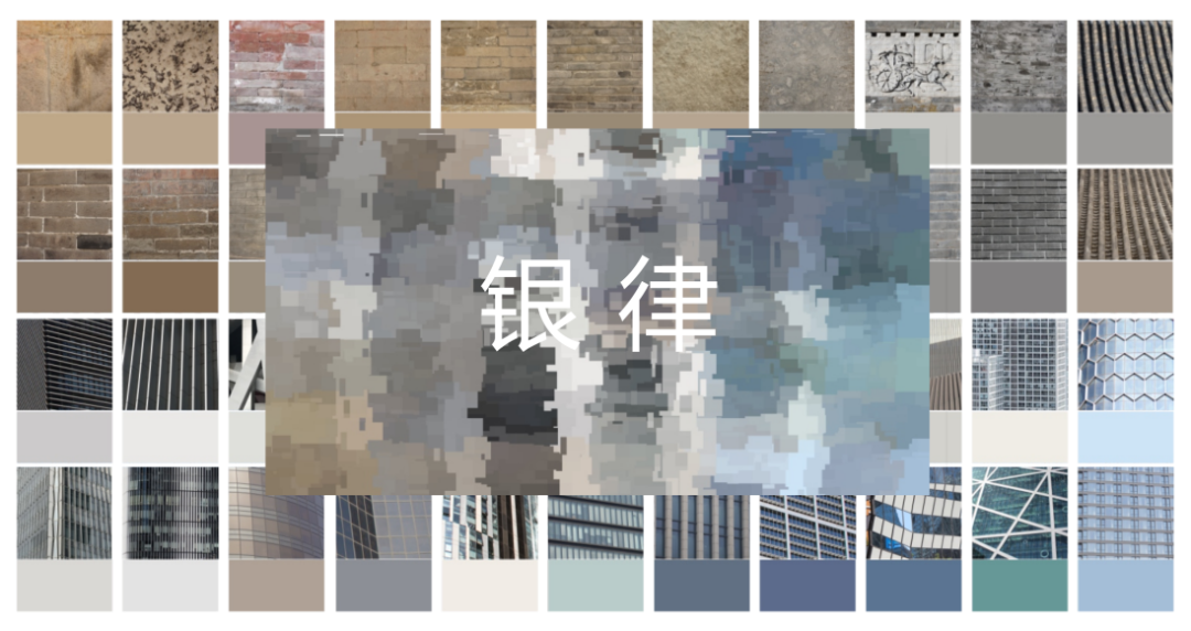 “银律”,银灰色调。北京城市风貌的另一组色调,色味暖而丰富。城市色彩文化根源来自老城区四合院与胡同的灰砖灰瓦灰涂料,以及此后由石材、陶板、金属乃至玻璃构成的大型建筑幕墙。