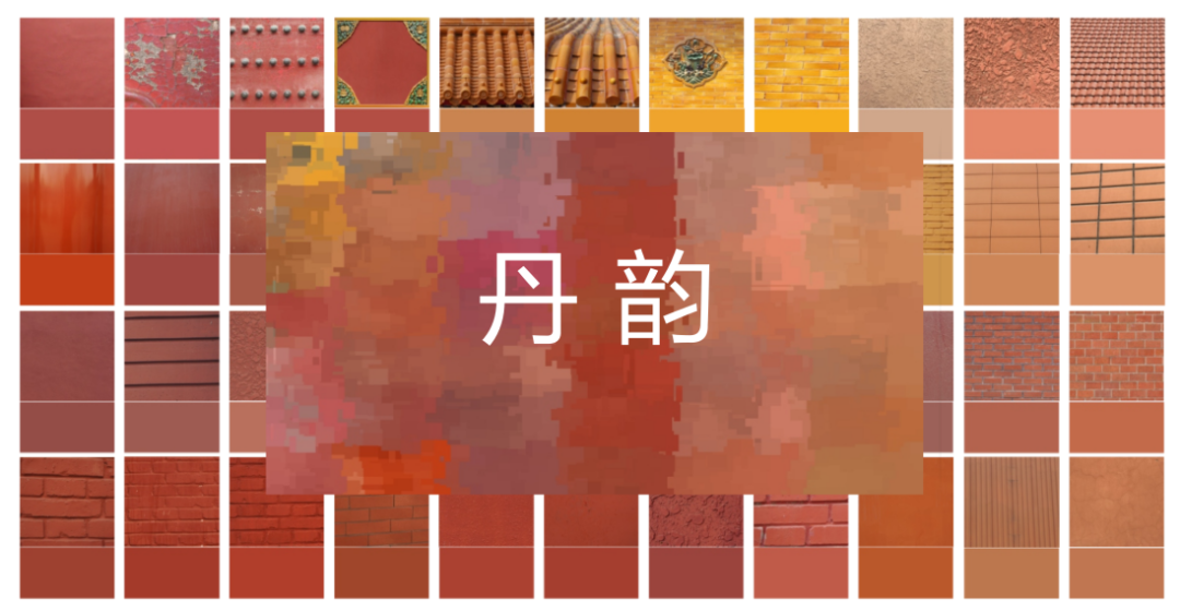 “丹韵”,丹色调,丰富暖味的红色系。首都城市色彩文化根源缘起于紫禁城的宫墙、朱门、红柱等一系列皇家建筑,本地的土壤色调及传统烧制的砖红,以及与近十年来北京在旧城更新中使用的各种不同中艳度的红色涂料“红色楼房”,这个色调逐渐汇聚成现今人们乐于接受的城市风貌视觉记忆的“丹韵”色调。