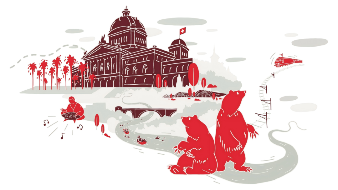 融合了瑞士的著名地标、传统艺术与体育赛事