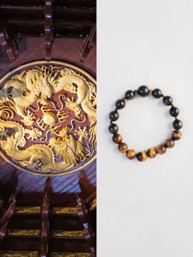 五禄财迷,珈蕴唯一一款情侣手串。随着光晕,圆润的金曜石光彩迷人,金色奇迹肉眼可见。女款取名元吉,含义为鹿,同禄。男款山君,含义为老虎,与虎眼石呼应,小财迷必入!