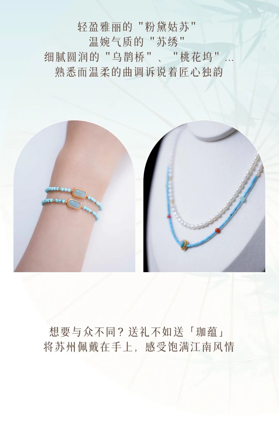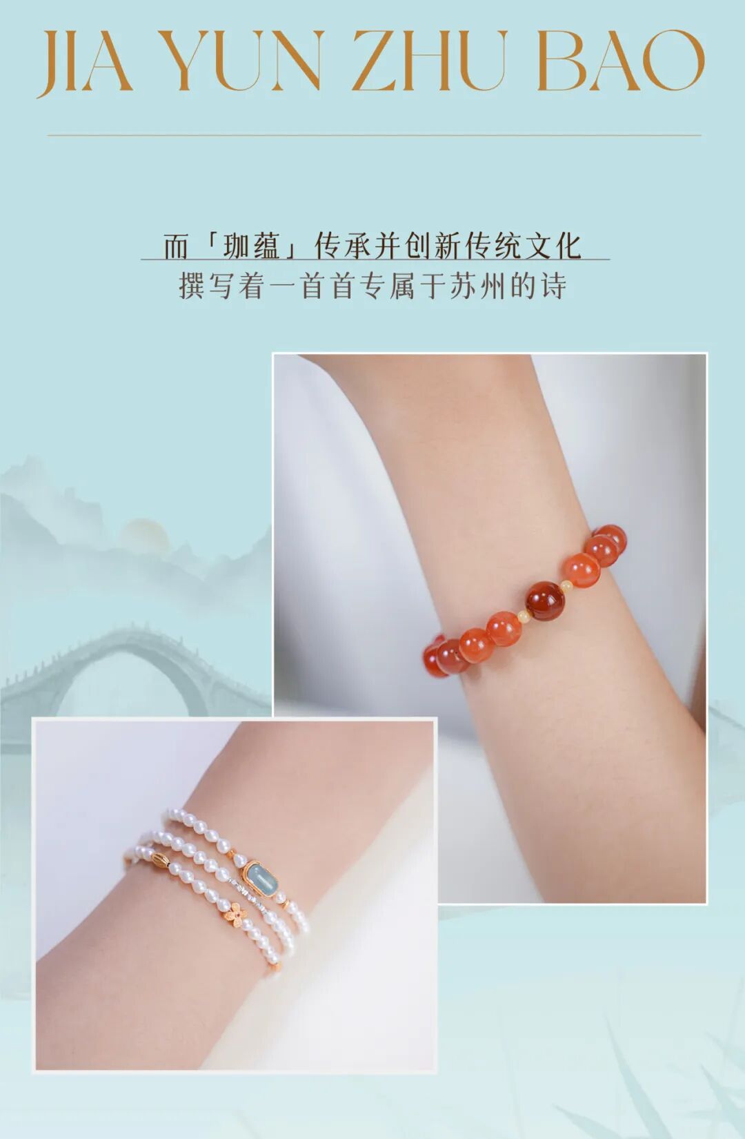 珈蕴是来自苏州的文创珠宝品牌,精心挑选天然玉石,通过精湛的工艺,将苏州园林的精巧、江南水乡的柔情微缩于方寸之间。