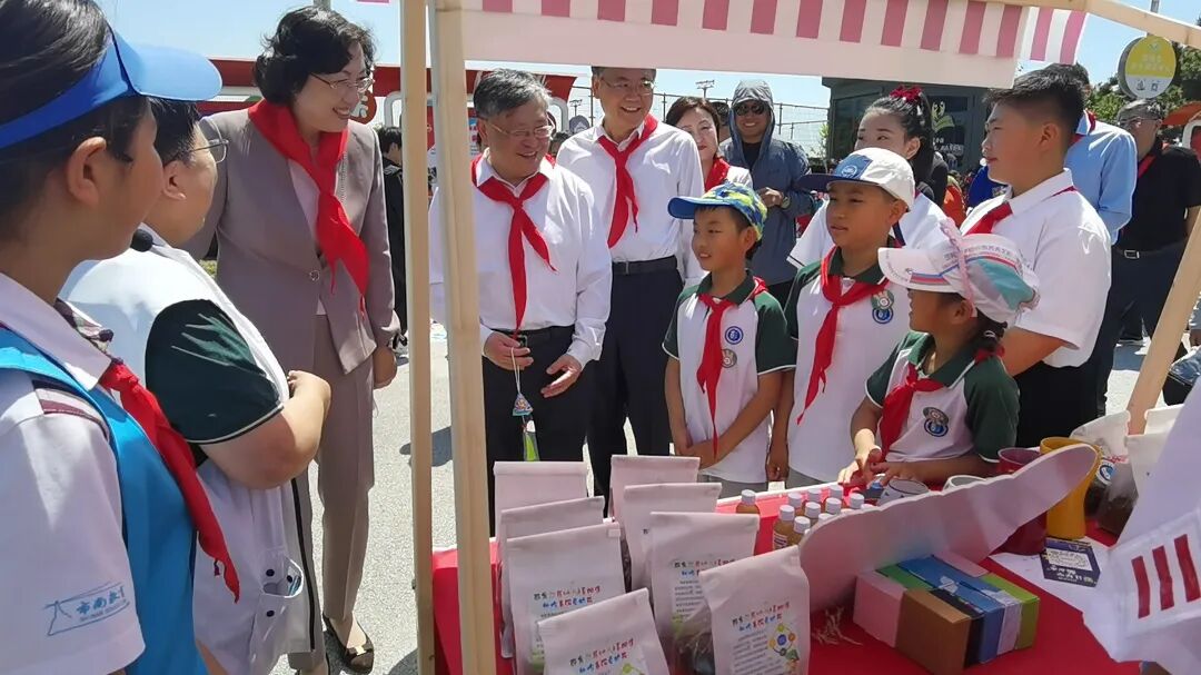 市委副书记、统战部部长张惠,市委常委、副市长耿涛,市关工委常务副主任王久军,市委副秘书长李金国来到市集,聆听了徐进老师精彩的项目介绍,饶有兴趣地走到我们的零废弃展台前,亲切询问绿先锋代表:小手拉大手如何做?厨余垃圾从哪里来?纷纷称赞以儿童为纽带校家社联动的模式。