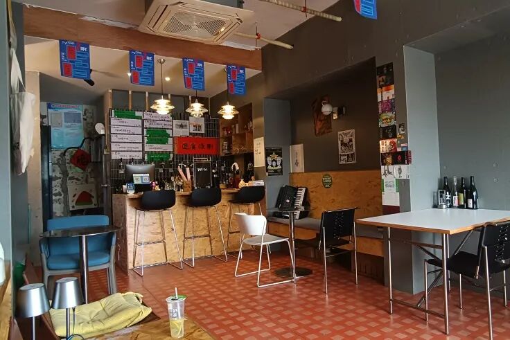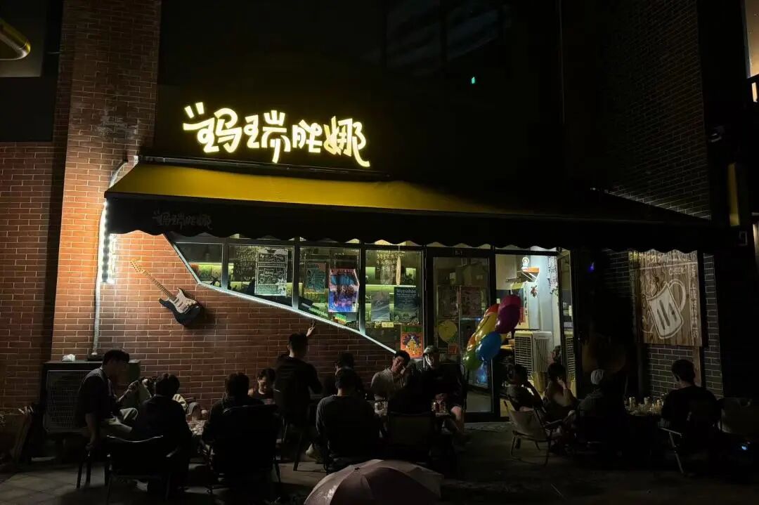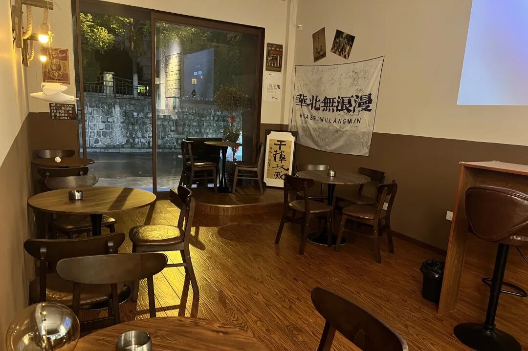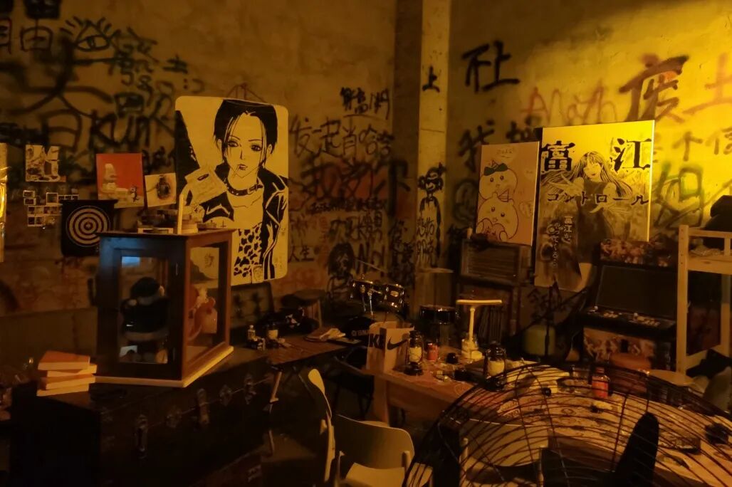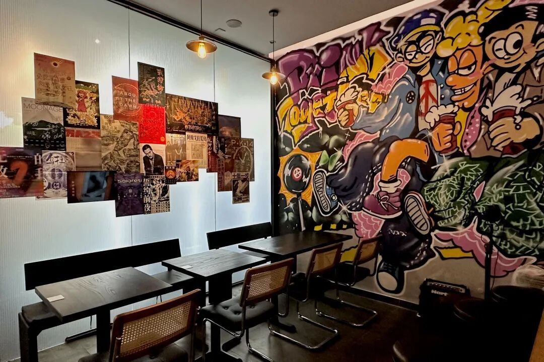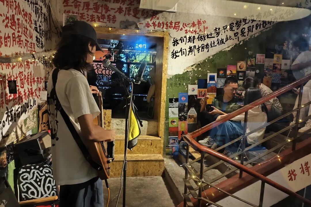 一家以摇滚乐现代诗为主题的楼梯间复合结构日咖夜酒,每个浪漫的夜晚在写满诗的楼梯间进行摇滚演出,极度自由放松的氛围。