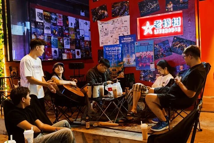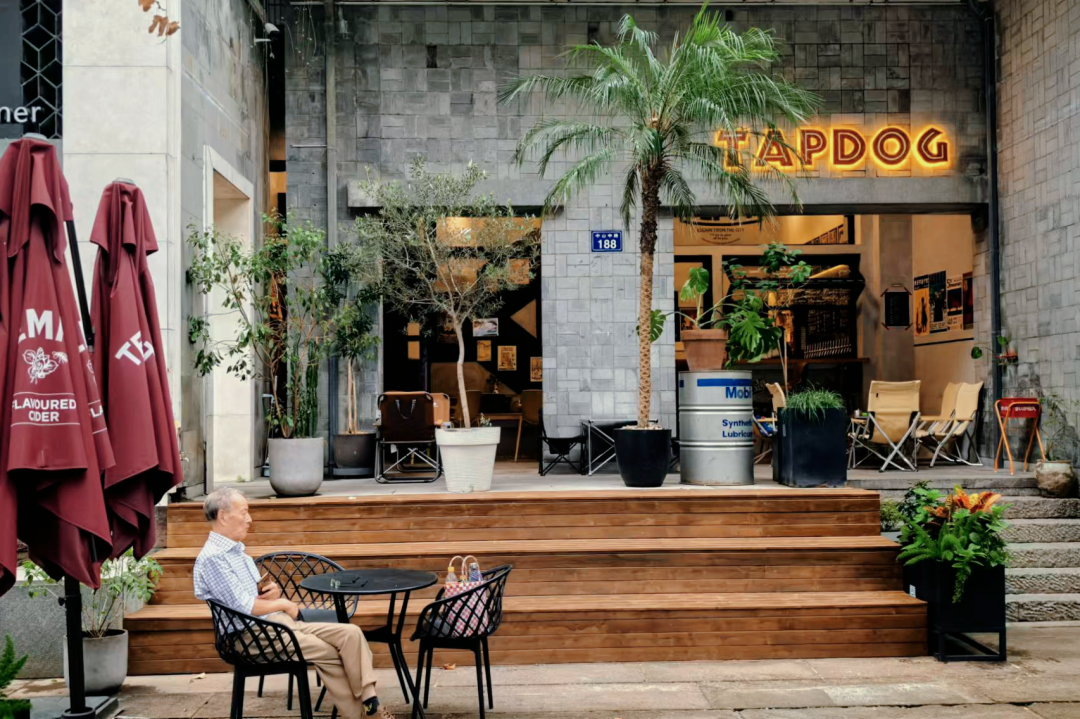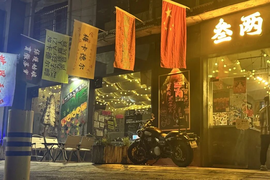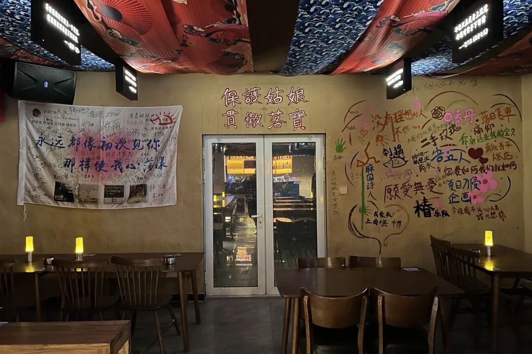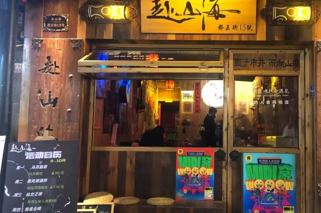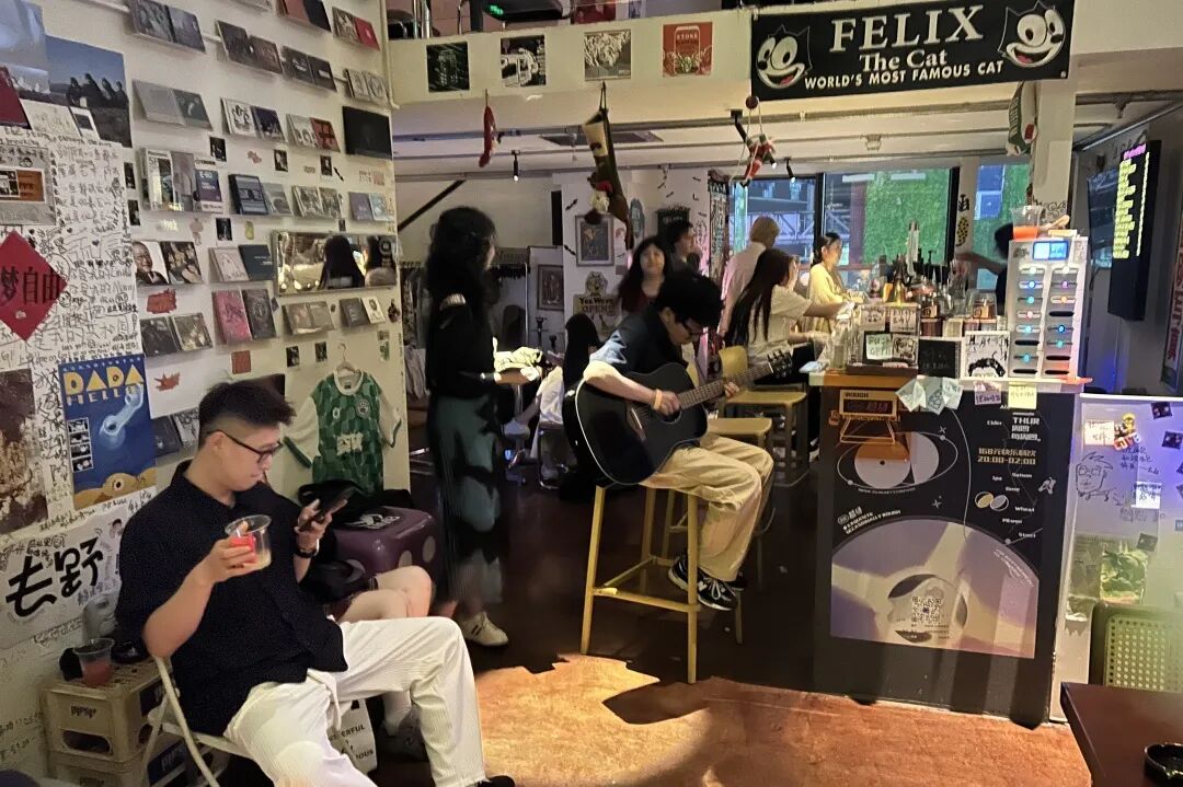 一家以摇滚乐现代诗为主题的楼梯间复合结构日咖夜酒,每个浪漫的夜晚在写满诗的楼梯间进行摇滚演出,极度自由放松的氛围。
