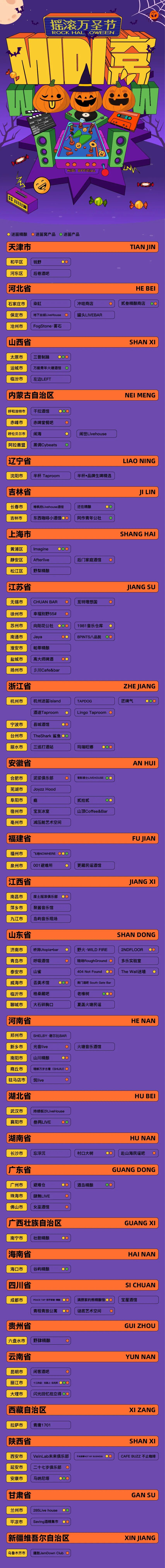 经过新一轮的筛选,迷笛窝合作店铺又新增了46家!我们选择在万圣节前夕将新增名单分享与你,每家迷笛窝都会装扮自己的店铺并设置见蝶优惠、尸脸到店享赠饮、cos大会、艺术生活节、畅饮、南瓜大作战、万圣节专供特调等专属活动,除活动外你还能在多家迷笛窝店铺体验到迷笛精酿、迷笛产品、迷笛窝专供产品,可根据海报上的圈圈标注了解查询。按时回窝,请你一定去感受一下迷笛窝的趣味魅力。无法想象这个活动好玩的上限,期待你的cos!除了新增迷笛窝外之前的窝也加入了本次摇滚万圣节队伍,全国109家迷笛窝店铺,go!