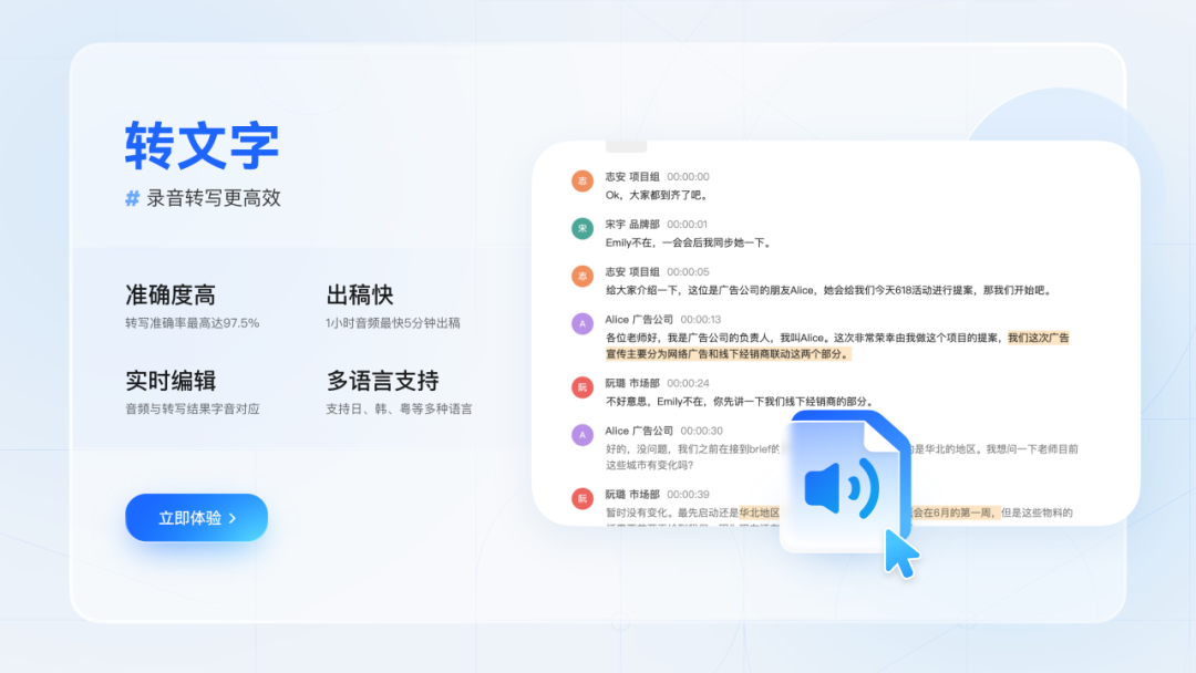 课堂上,讯飞听见凭借先进的 AI 语音识别技术,能快速将老师的授课内容精准转化为文字。即使老师语速较快,或者带有口音,也不用担心遗漏重要知识点。课后复习时,这些转化后的文字记录能帮助你快速回顾课程重点,让复习更高效。