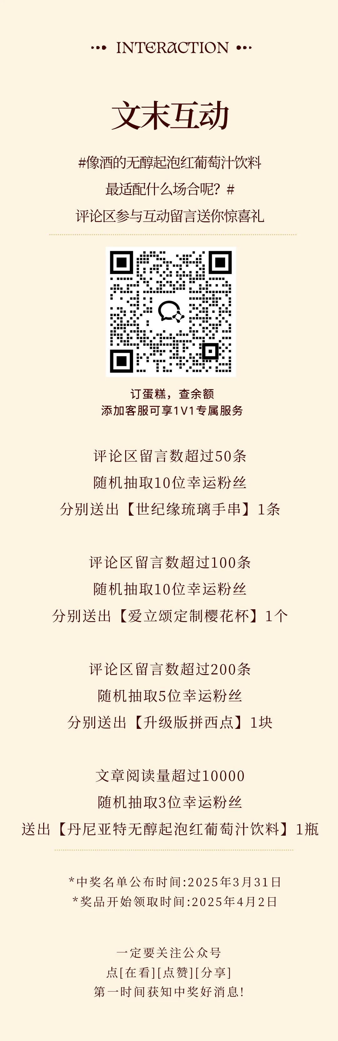 摘要:生日好伴侣,聚会放肆嗨\x0d\x0a口感像酒的无醇起泡葡萄汁