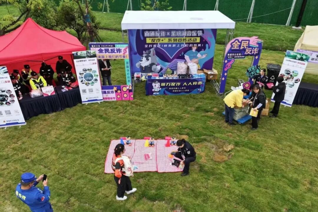 不仅有贴心服务,更有暖心互动。记者在现场看到,舞台正对面由市文广旅局设置的通通小屋文创打卡点前,不少乐迷排起了长队,只为和南通城市IP卡通形象“通通”来一场快乐的偶遇。乐迷扫码关注“南通好玩”微信公众号,即可参与转盘抽奖,赢取文创冰箱贴、景区门票、城市明信片、福袋等“通通”周边产品。此外,文创点还安排了志愿团队和应急救援点,为乐迷保驾护航。