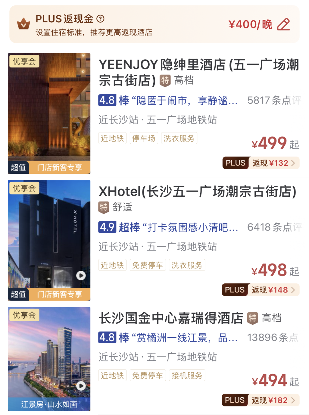 PLUS返现¥100的酒店入住