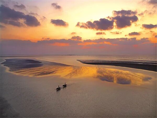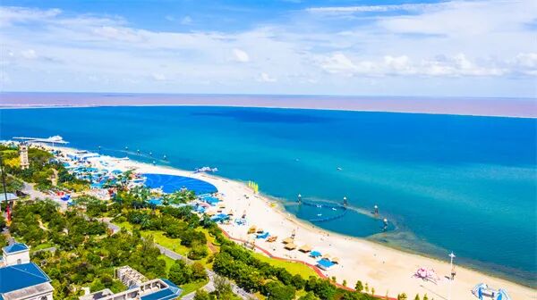 启东圆陀角度假区:这里长江、东海和黄海三面环绕,灯塔眺望着远方,沙滩草伞排开而坐。当阳光洒过海面,伸手仿佛触碰到天边的彩霞与无尽的大海融为一体。启东圆陀角利用巧思建筑堤坝突破传统观海体验,令双色海奇观尽收眼底。一条堤坝横跨南北,阻隔了浑浊的黄海之水,形成碧海银沙双色海的奇景。大坝外是黄灰色的惊涛骇浪,内侧是碧蓝色的宁静海湾。