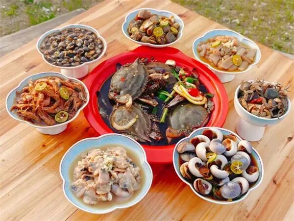 如东美食“醉八鲜”:如东人的餐桌上一年四季不离海鲜,每一种海鲜都有很强的时令,唯有“醉八鲜”从年初吃到年尾,浓缩了如东人对“鲜味”的理解。竹蛏、文蛤、相思螺、泥螺、蟛蜞、皮皮虾、梭子蟹、红虾,满满一桌子海鲜盛宴。