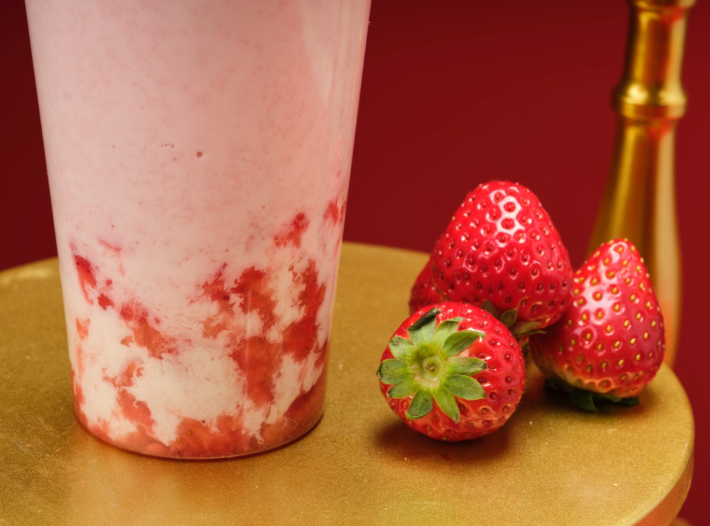 选用新鲜草莓与草莓果蓉的组合