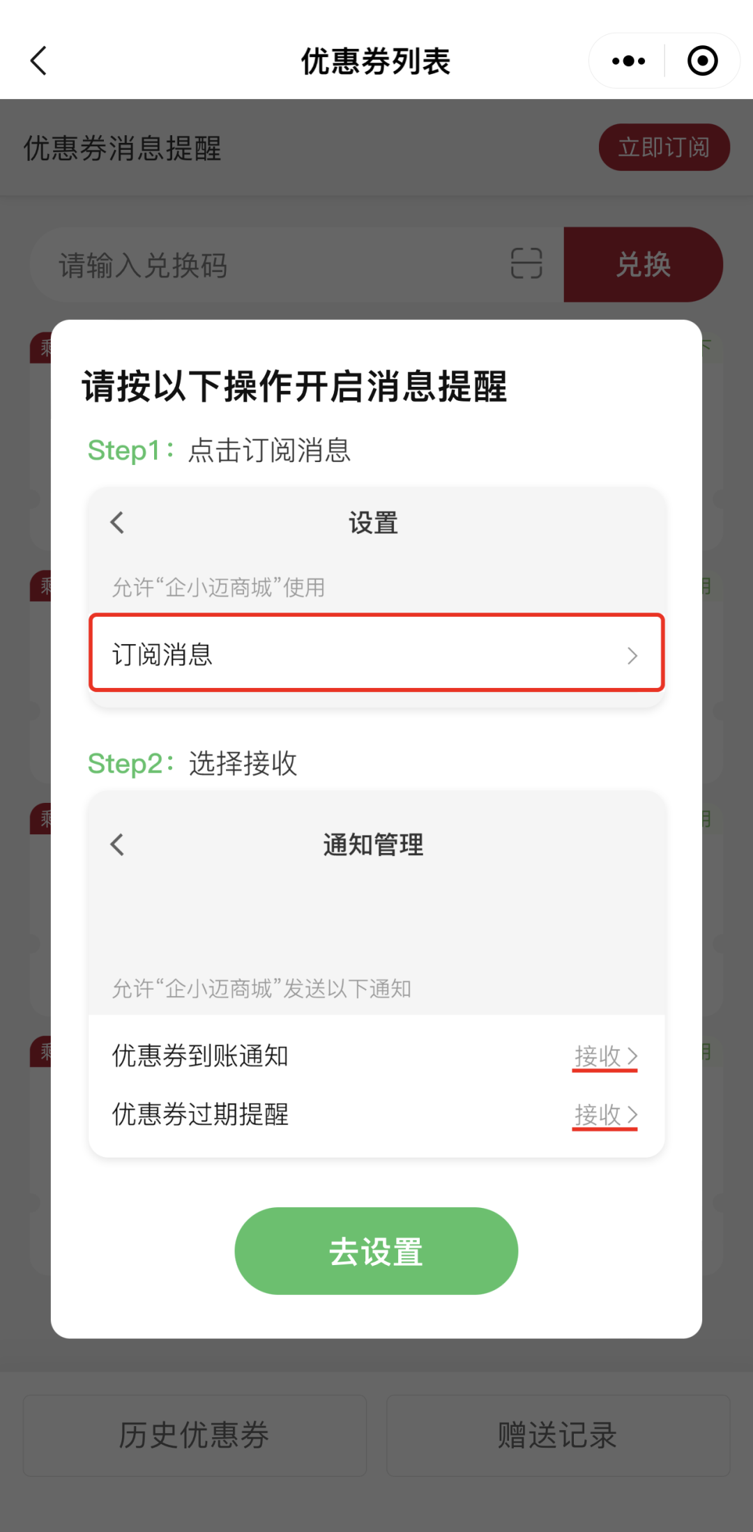 别忘了打开小程序消息订阅