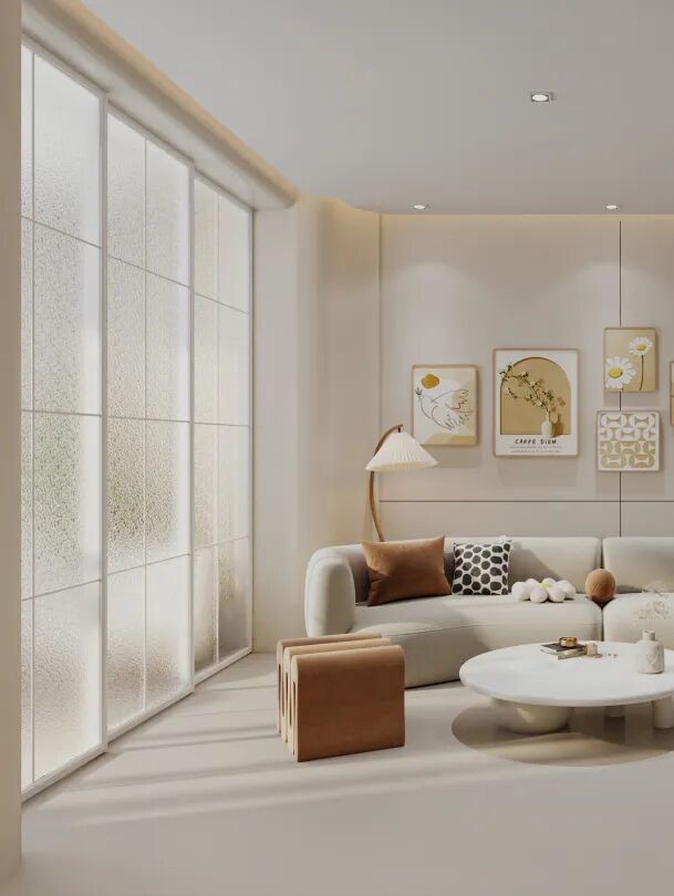 型材(奶油白)| 玻璃(水晶压花)