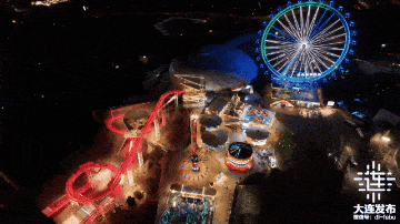 在兴奋与尖叫声中享受游乐场带来的欢乐。夜晚乘坐摩天轮赏大连夜景,更是别有一番韵味。