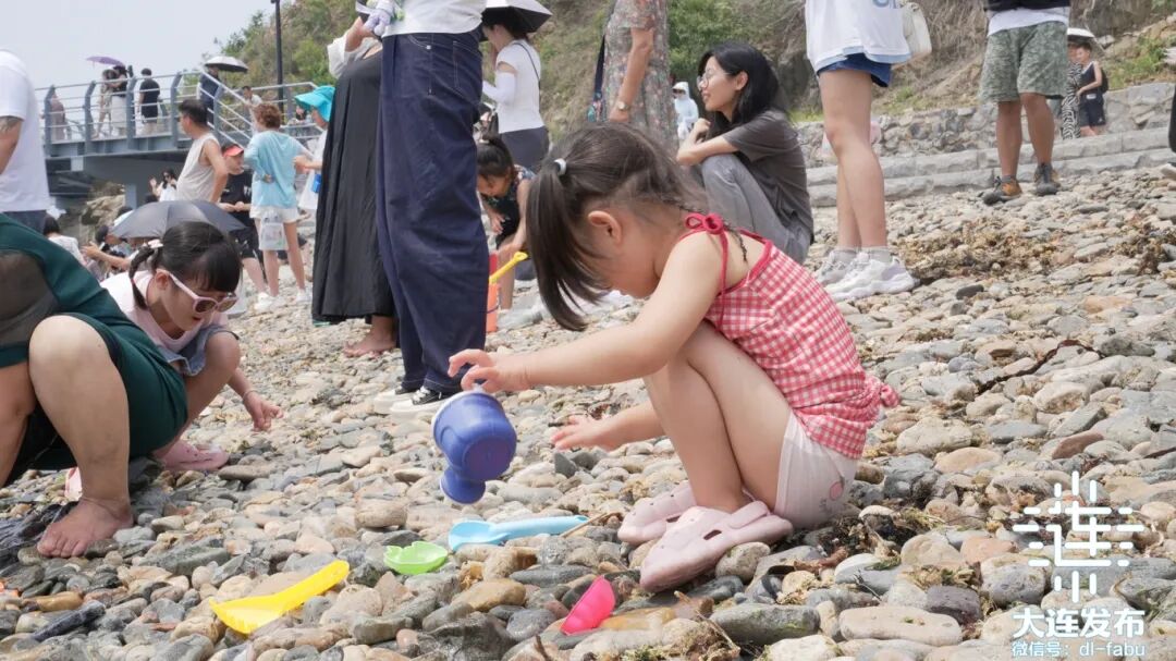 星海公园的沙滩由沙砾卵石混合,如果想感受在海边捡鹅卵石“打水漂”的乐趣,来这里就对了。