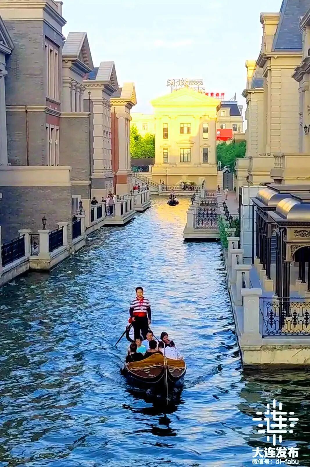 东方水城的贡多拉游船是游客不可错过的特色体验。乘坐贡多拉沿着蜿蜒的水道,游客可以一边欣赏两岸的欧式建筑,一边享受水城夜晚的宁静与美丽。