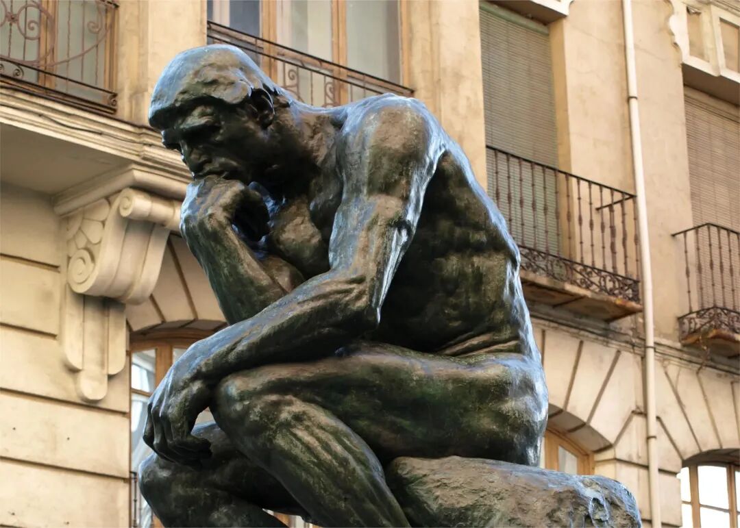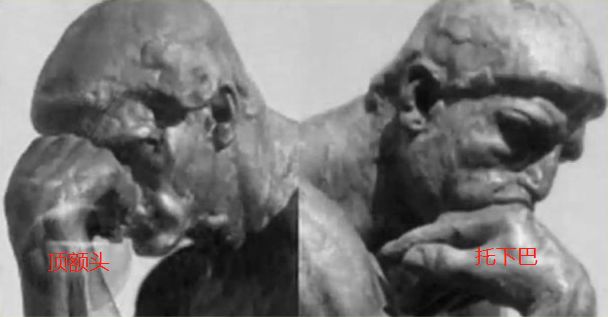还记得思想者在沉思时的样子吗?在你的记忆中,他的手是顶着额头还是拖着下巴(如下图)?