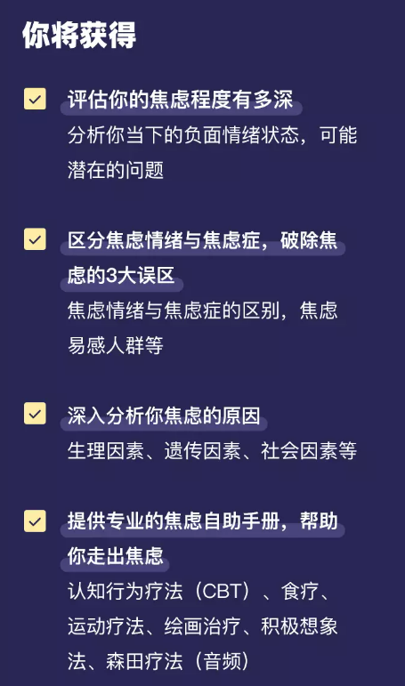 该测试可以帮助你评估焦虑程度,认清你的焦虑状态,并分析焦虑的成因,教你如何控制焦虑,最终将焦虑赶出你的生活!