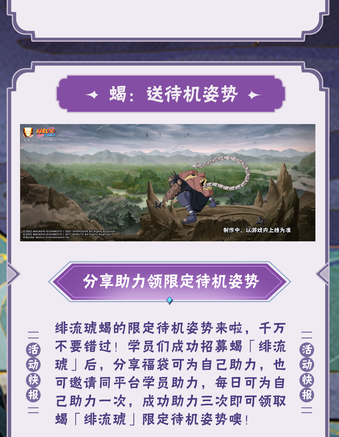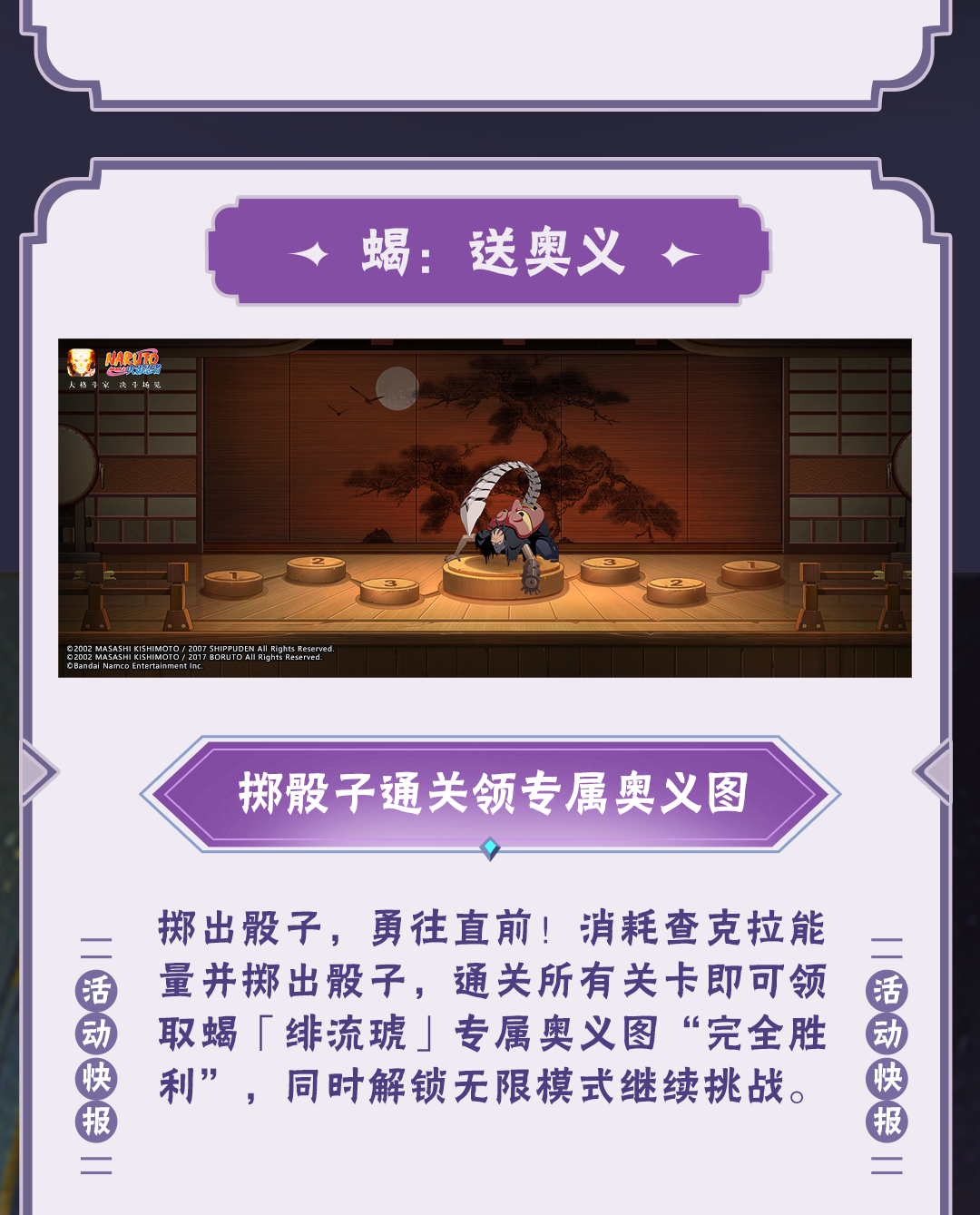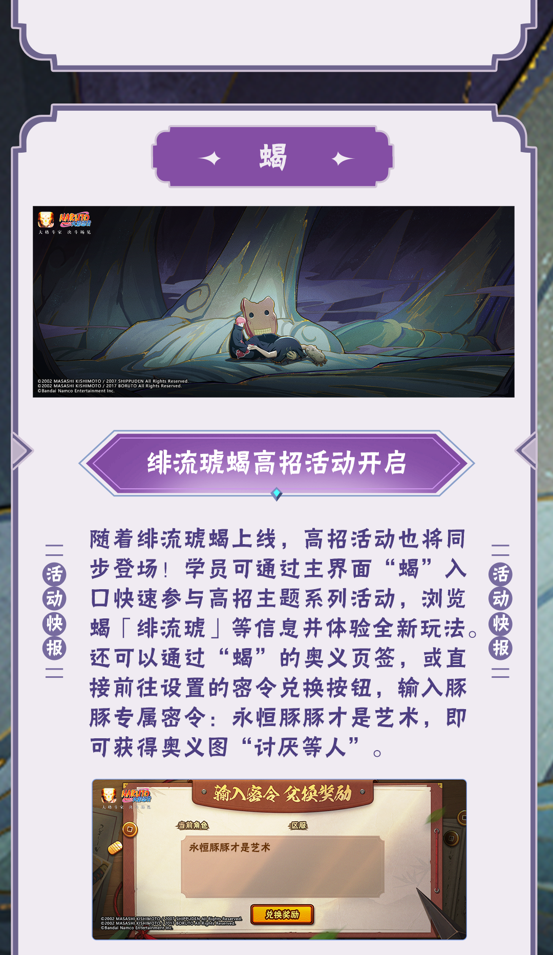 点击公众号菜单栏【豚豚福利】,参与火影忍者手游情报社活动,可领取金币、忍玉、随机忍者碎片等福利!