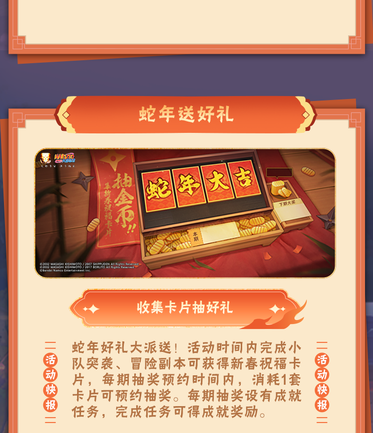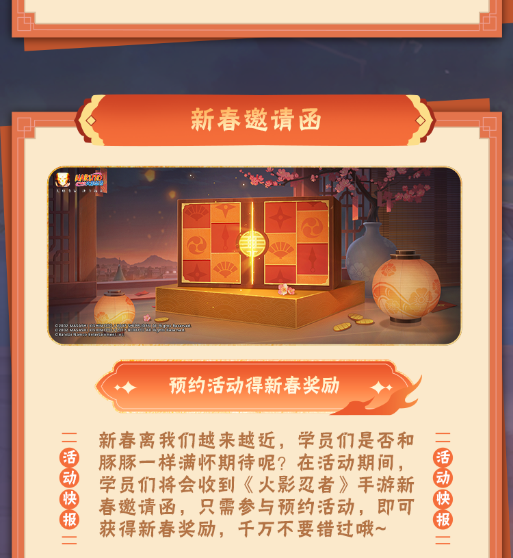 点击公众号菜单栏【豚豚福利】,参与火影忍者手游情报社活动,可领取金币、忍玉、随机忍者碎片等福利!