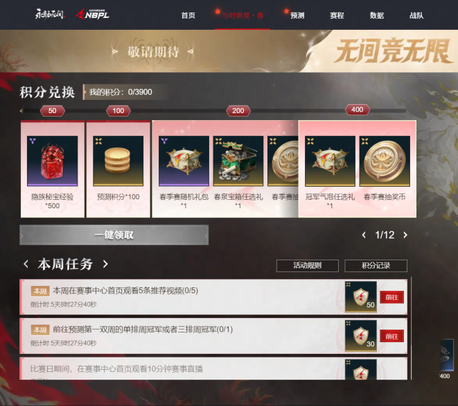 参与【与时俱竞·春】完成任务兑换奖励获取。