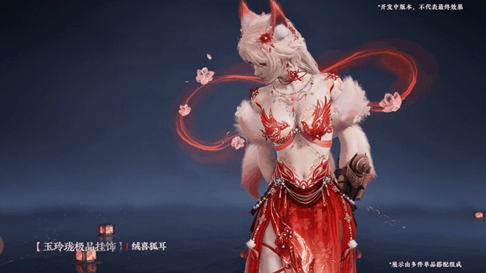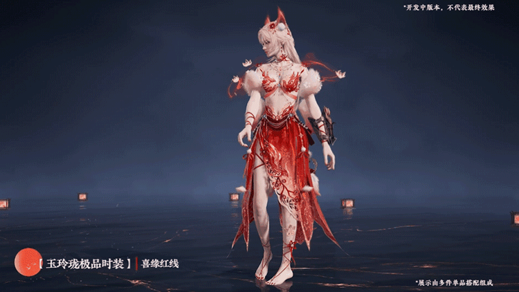 千里姻缘一线牵,玉玲珑身着富含红线元素的全新时装,来给大家送喜!