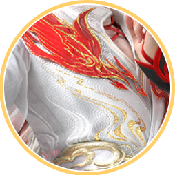 身着传统剪纸风格装饰的红衣,辅以华丽宝石装饰,贵气十足。
