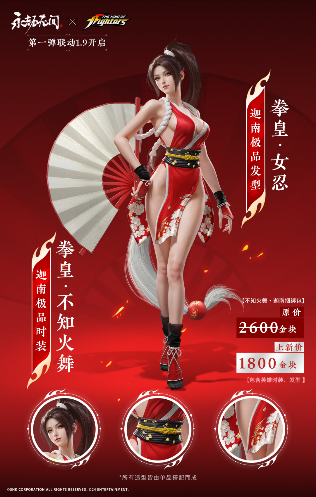 永劫无间 X 拳皇联动即将告一段落,不知火舞将于2月13日12:00正式下架,喜欢的英雄们千万不要错过~
