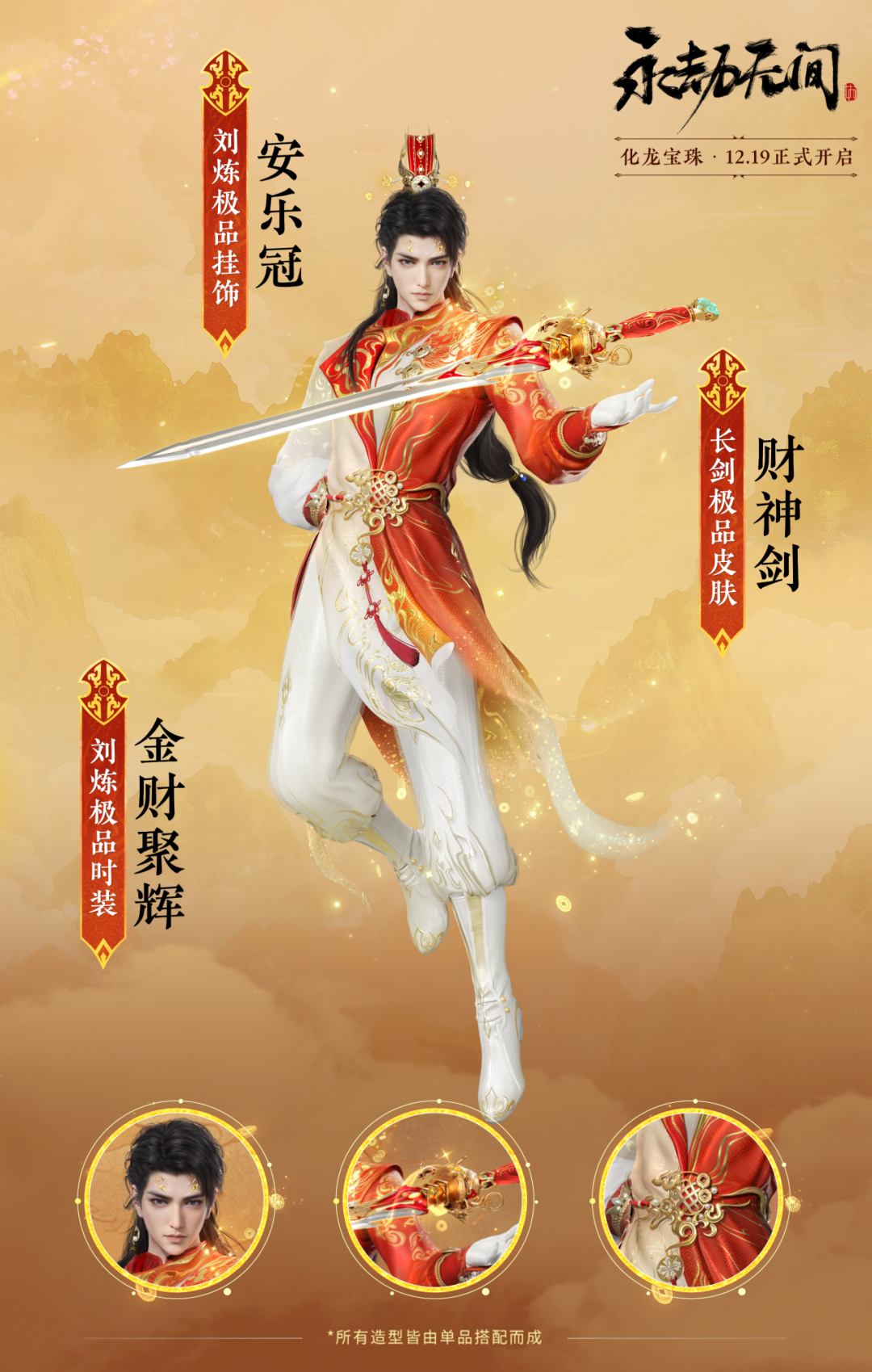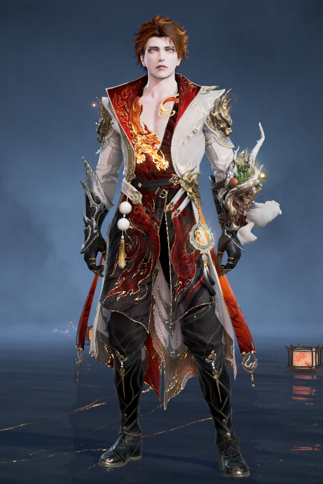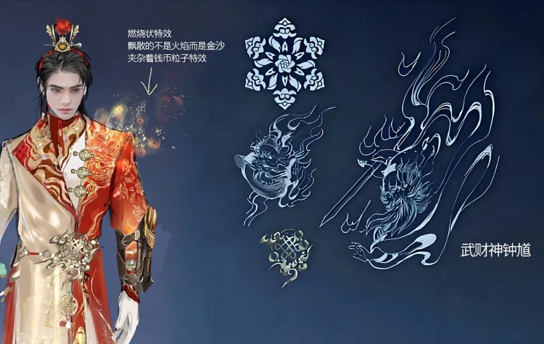 我们的设计,就围绕天官与虎的概念展开;特效流光老虎盘踞在胸口,代表“福”星高照,配合周身的金红祥云纹,更添喜气。